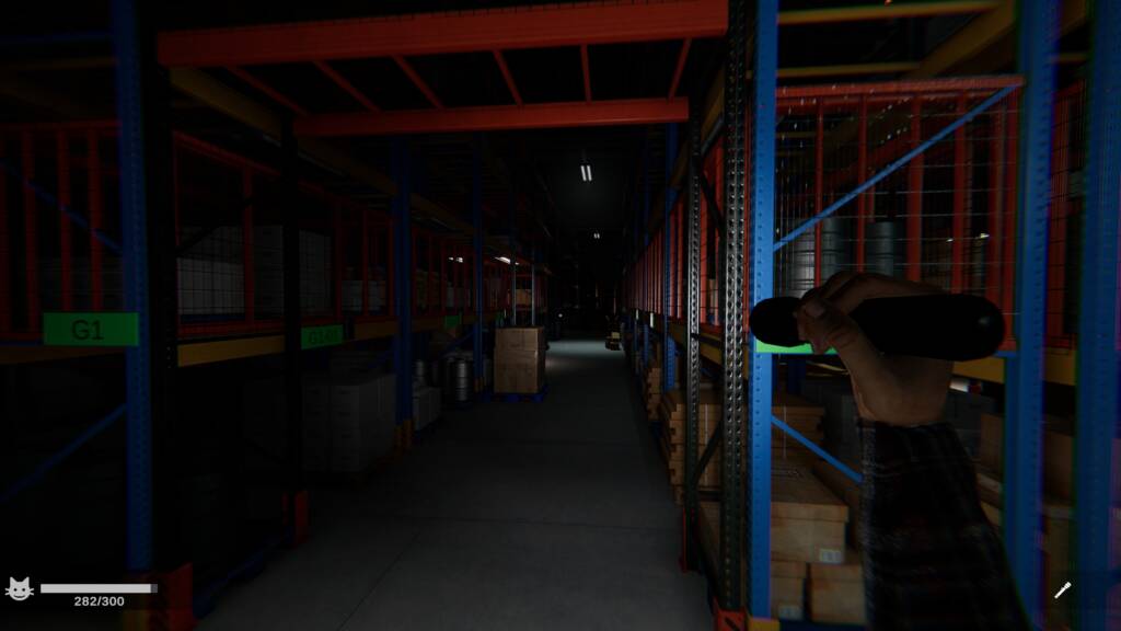 Each shift starts at your terminal, where you’ll print out customer requests and scan a barcode that points you in the direction of the next collection. Sounds simple, until you realise the place is barely lit, and your only lifeline is the flashlight you have to buy. The scanner tells you where to go. Once you find the spot, you punch in the keypad code and retrieve the item… If nothing gets to you first. But be aware that inside this warehouse, a deformed monster hunts. This becomes aware and sprints at you the moment it sees or hears you. What was supposed to be a punch-in, punch-out job becomes a fight for your life. The game, however, isn’t unfair, as throughout the warehouse, you will find small gaps under the shelving that can be used to hide. Sounds like working at Amazon, right? This job is far from easy. Damn you, Jeff! Once you have collected the item, make your way back to the office and proceed to the conveyor belts. Use a large box and fill it with the protective peanuts, and place your item gently into the box.